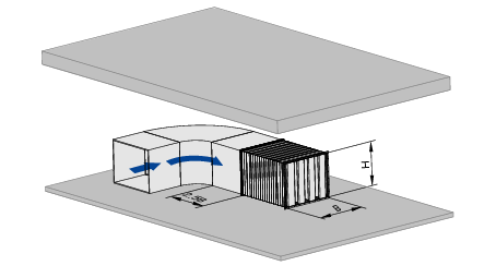 De lengte (L) van geluiddempercoulissen verwijst naar de luchtrichting.