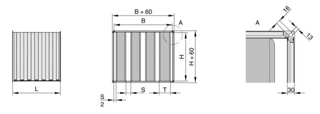 | Nominale grootten (B × H × L) | Serie XS 100: 150 × 150 × 500 mm – 2400 × 1800 × 1500 mm Serie XS 200: 250 × 150 × 500 mm – 2400 × 1800 × 1500 mm Serie XS 230: 288 × 150 × 500 mm – 2400 × 1800 × 1500 mm Serie XS 300: 375 × 150 × 500 mm – 2400 × 1800 × 1500 mm |