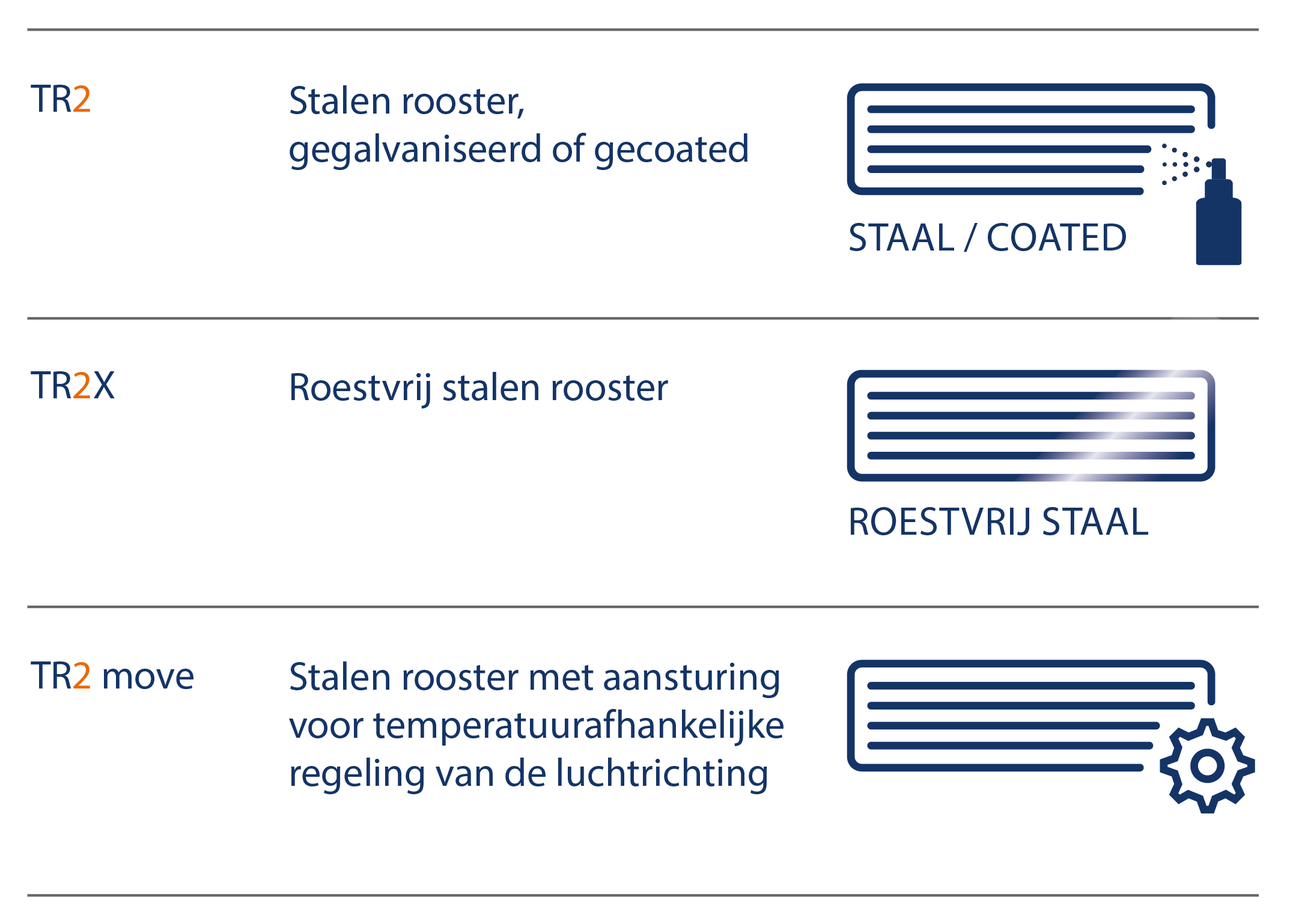 Met de nieuwe, geoptimaliseerde TR2-serie zijn alle voorgaande TR-roosters gecombineerd in één innovatieve lijn.