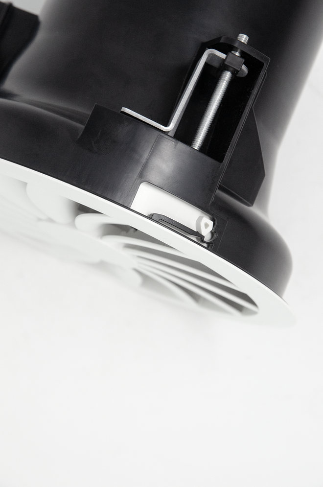 Frontrooster, aansluittuit en inregelklep van kunststof ABS, volgens UL 94, V-0, vlamwerend