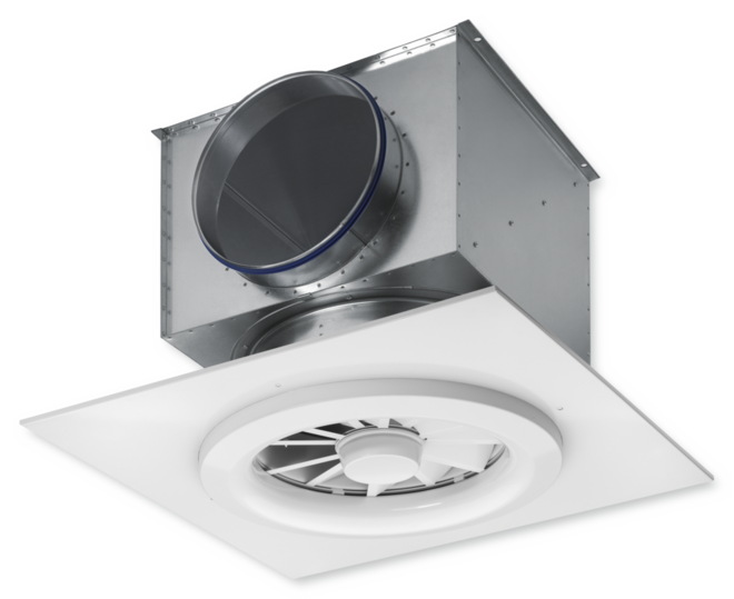 Wervelroosters met rond frontrooster voor comfort- en industriële toepassing in hoge ruimten. Als toevoerrooster. Met vaststaande lamellen voor horizontale inblaas en met verstelbare lamellen voor horizontale tot verticale inblaas. Horizontale inblaas met hoge inductie. Voor vrijhangende plaatsing en voor inbouw in verlaagde plafonds